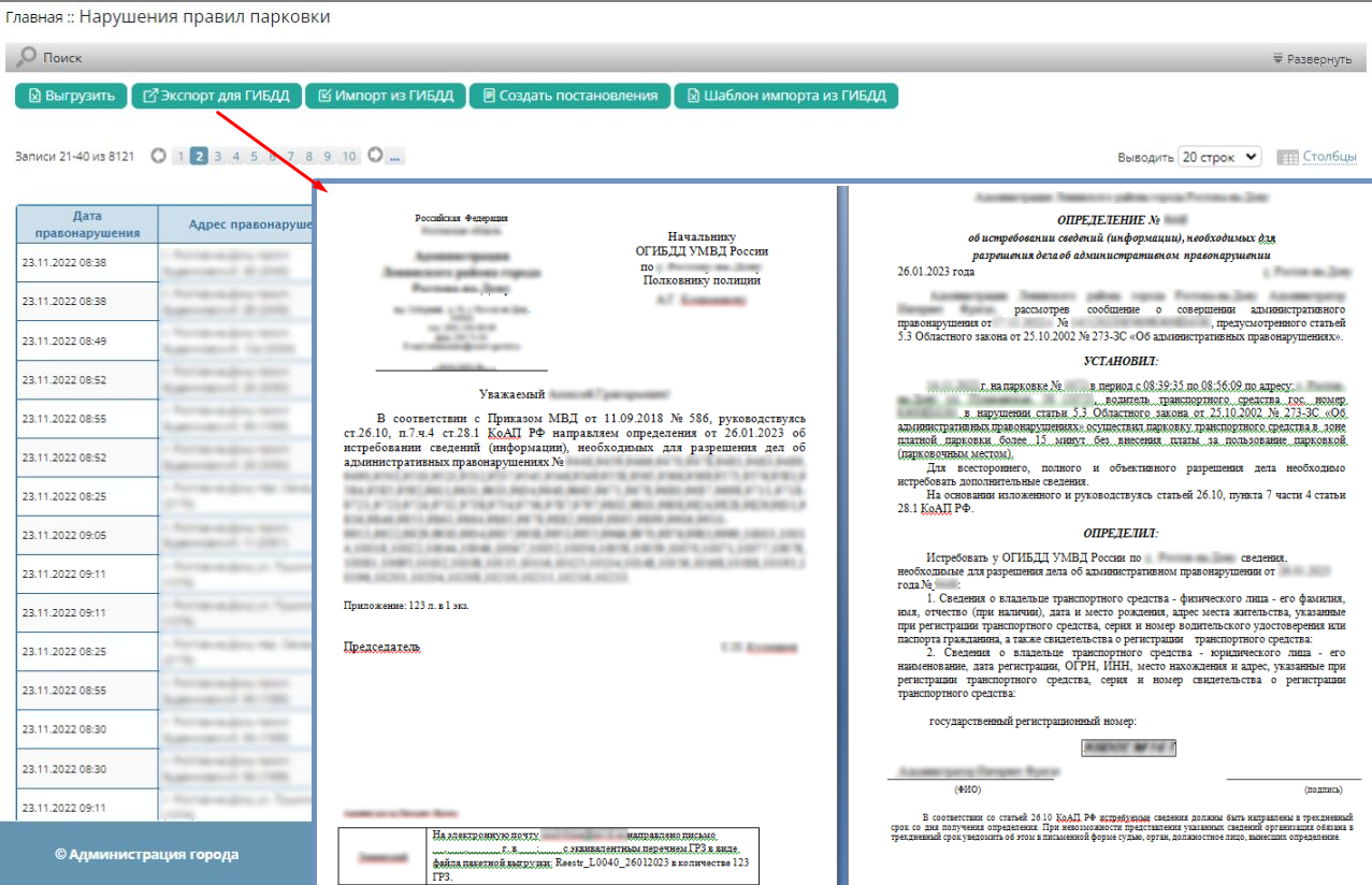 Взаимодействие с Почтой России: Организация массовой рассылки официальных документов нарушителям.