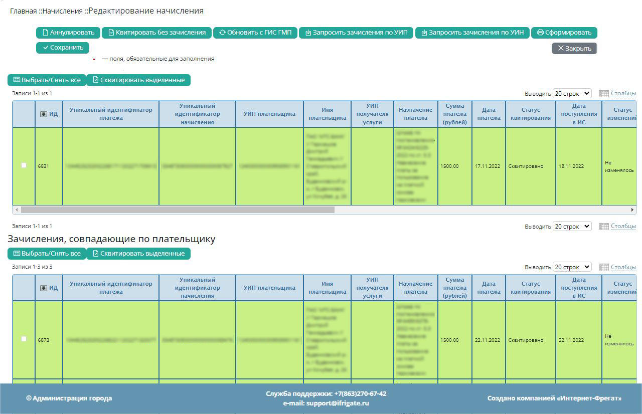 Мониторинг поступлений и оперативное квитирование (сверка) начислений и зачислений.
