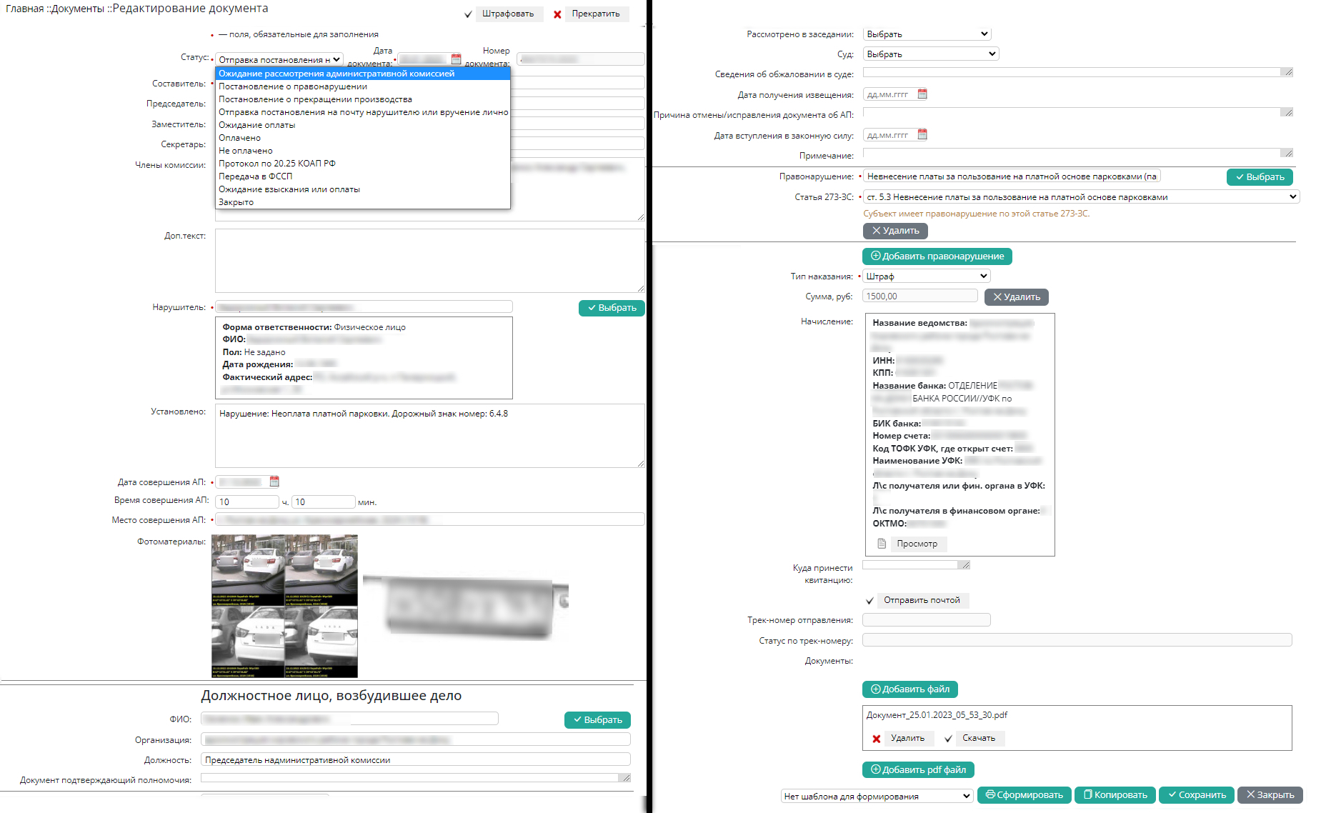 Автоматически отслеживайте весь жизненный цикл дела о нарушении — от фиксации до исполнения постановления.