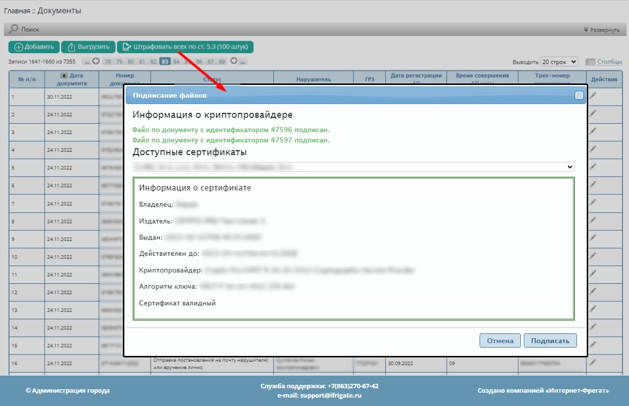 Подписание сформированных постановлений квалифицированной электронной подписью (КЭП).